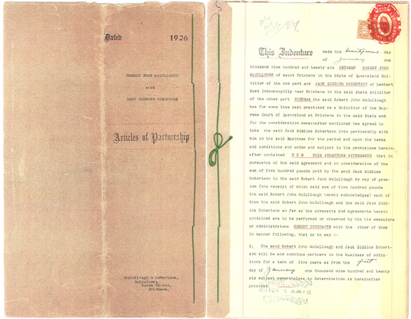 McCullough & Robertson, or McCullough Robertson as we are now known, was established by founding partners, Robert McCullough and Jack (Jock) Robertson.